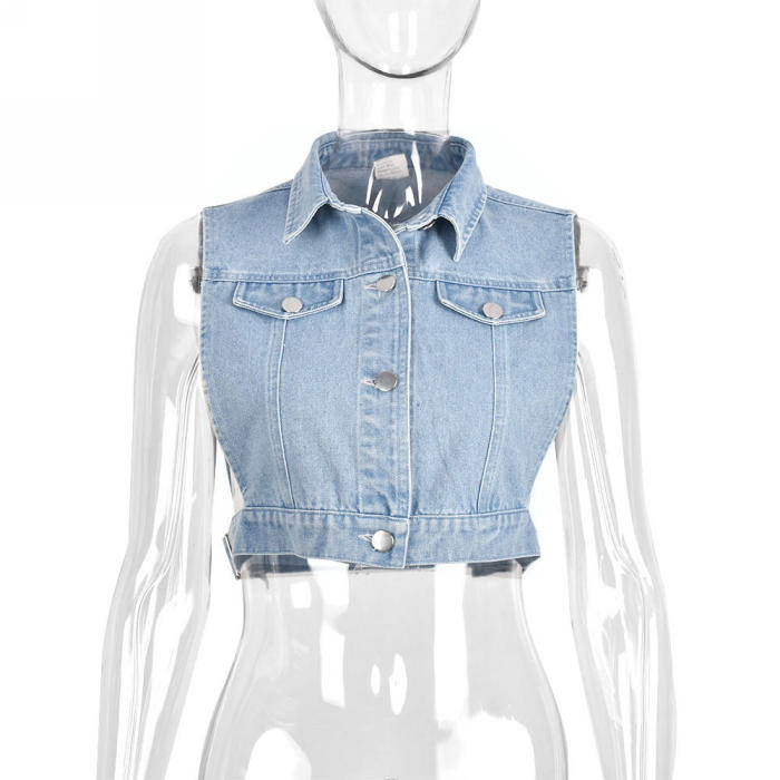 (Real Image)2022 Styles Women Fashion Summer TikTok&Instagram Styles Jeans Front Button TopsSKU: #CF59237-1