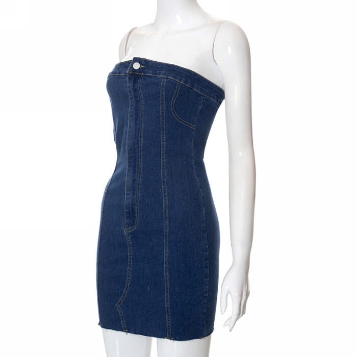 (Real Image)2022 Styles Women Fashion Summer TikTok&Instagram Styles Jeans Tube Tube Mini DressSKU: #CF76014-1