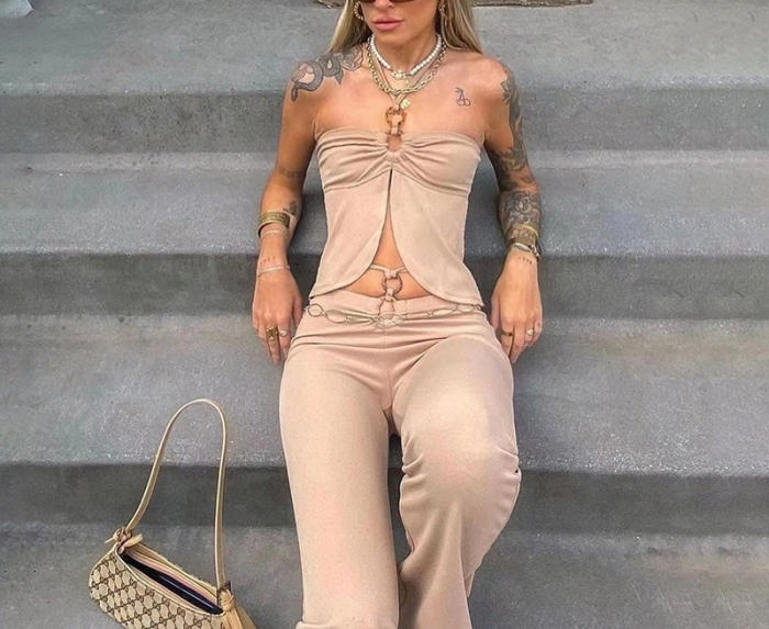 (Real Image)2022 Styles Women Fashion Summer TikTok&Instagram Styles Khaki Two Piece SuitSKU: #CF47214-1