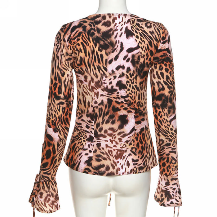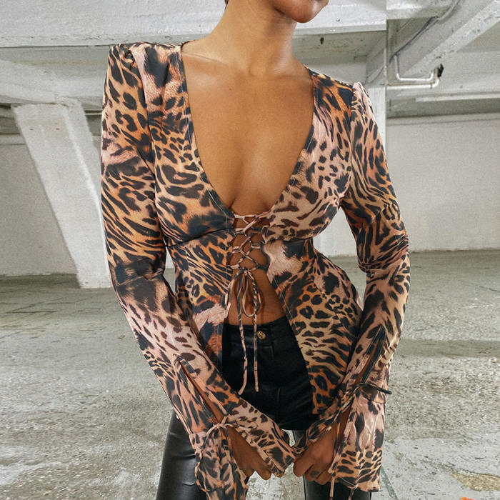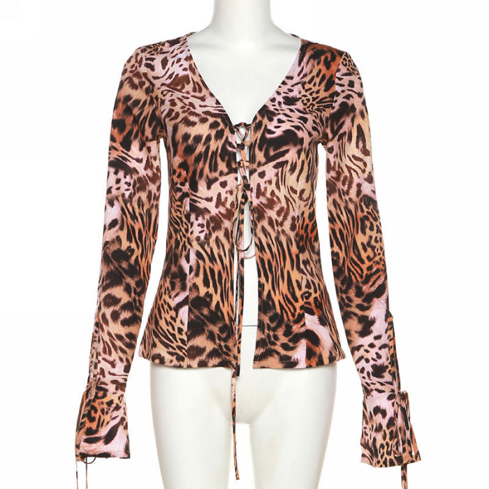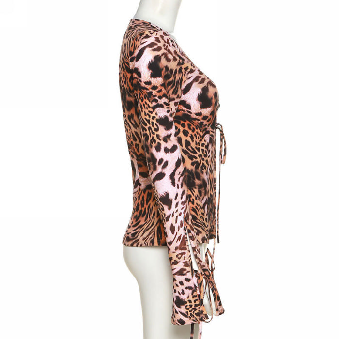 (Real Image)2022 Styles Women Fashion Summer TikTok&Instagram Styles Leopard Lace Up ShirtsSKU: #CF47225-1