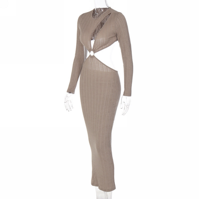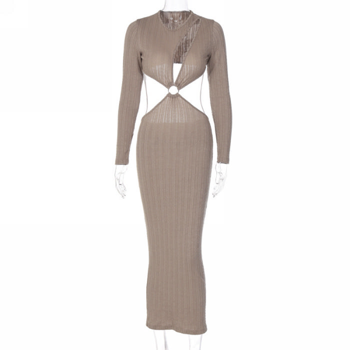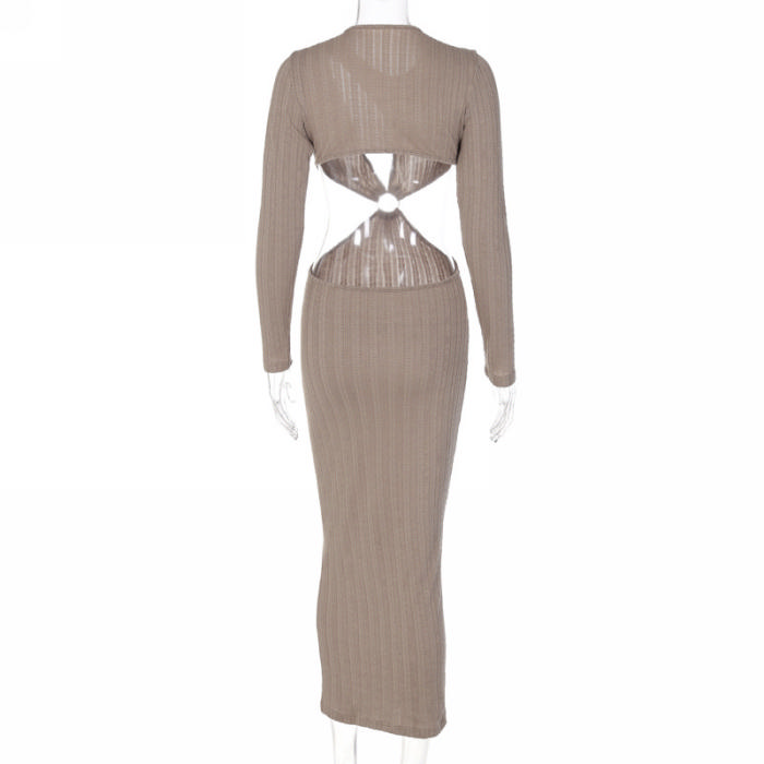 (Real Image)2022 Styles Women Fashion Summer TikTok&Instagram Styles Long Sleeve Cut Out Maxi DressSKU: #CF22746-1