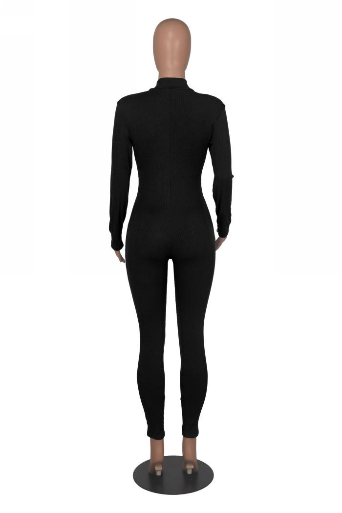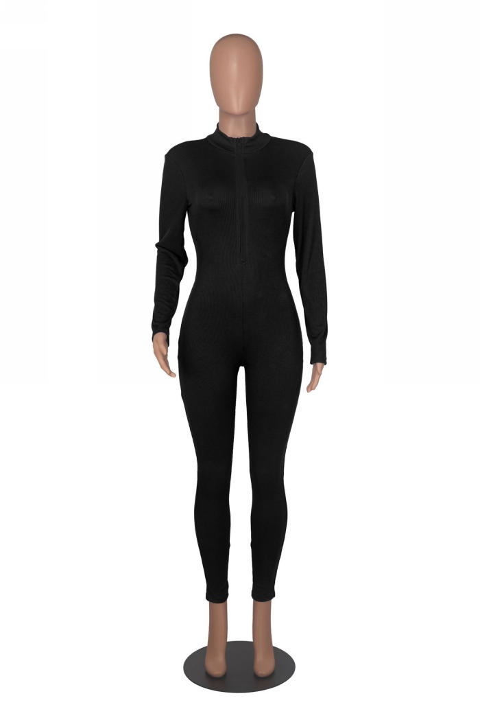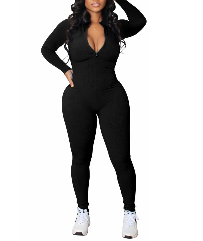 (Real Image)2022 Styles Women Fashion Summer TikTok&Instagram Styles Long Sleeve Front Zipper Solid Color JumpsuitSKU: #OEM5760-1
