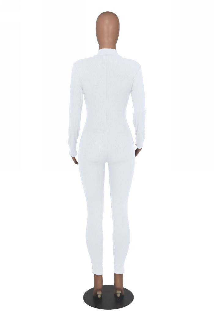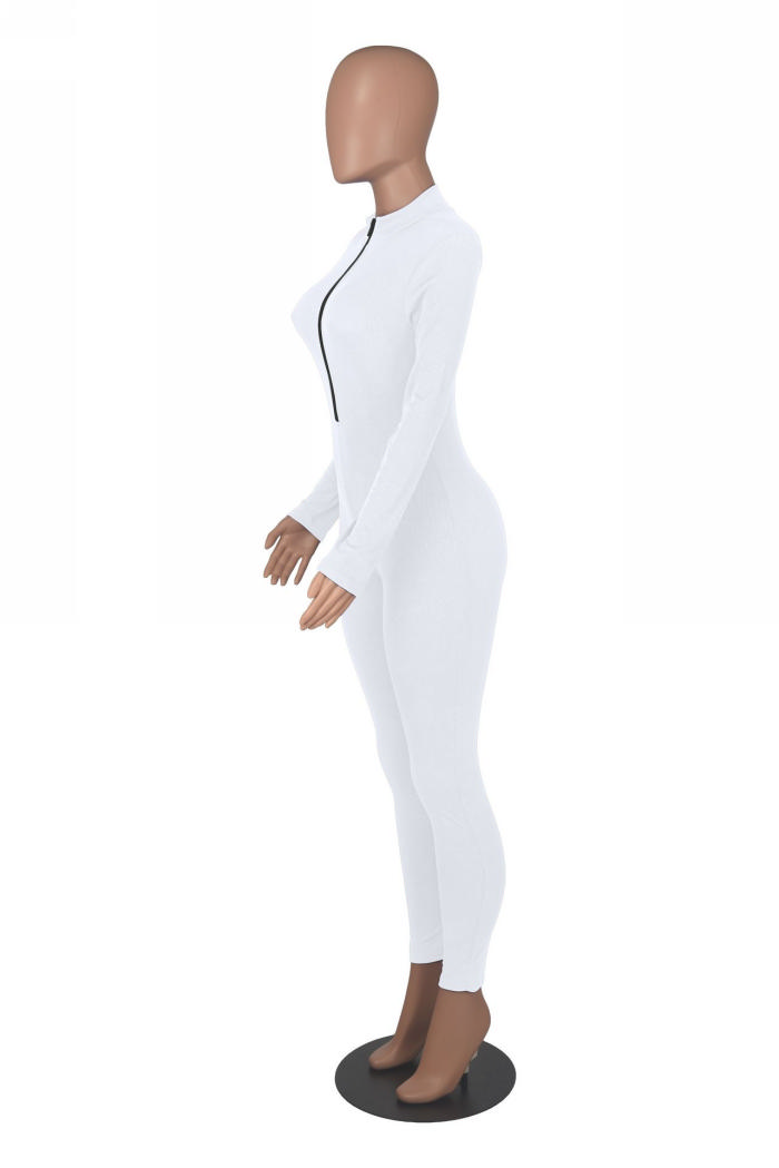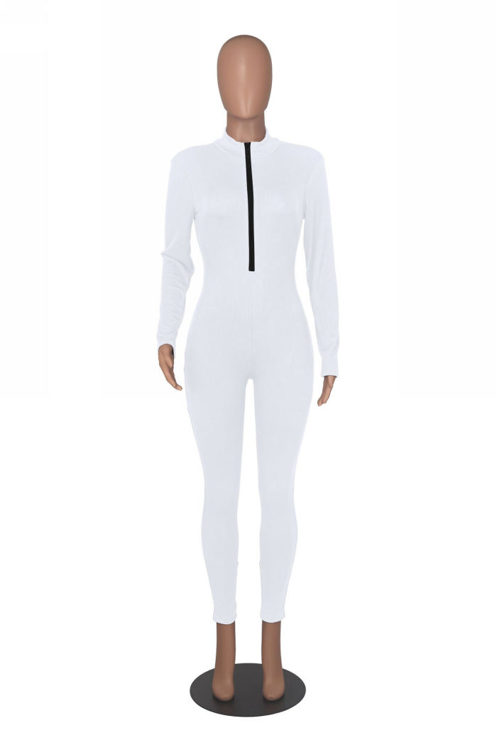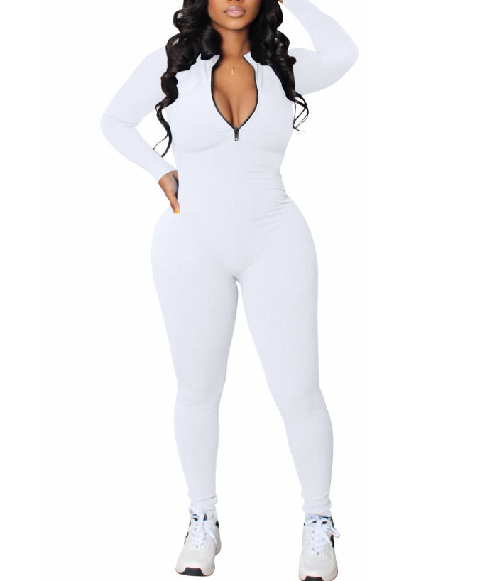 (Real Image)2022 Styles Women Fashion Summer TikTok&Instagram Styles Long Sleeve Front Zipper Solid Color JumpsuitSKU: #OEM5760-2