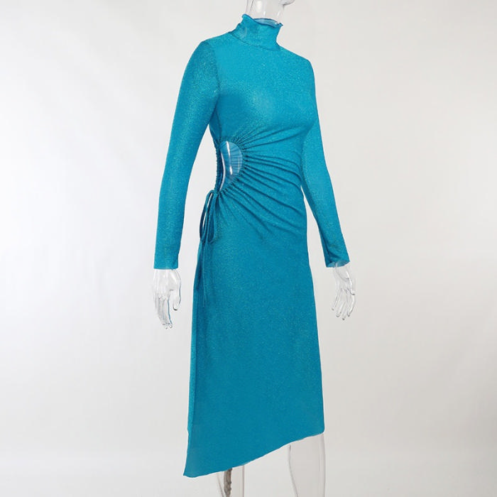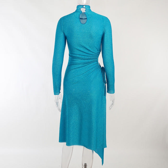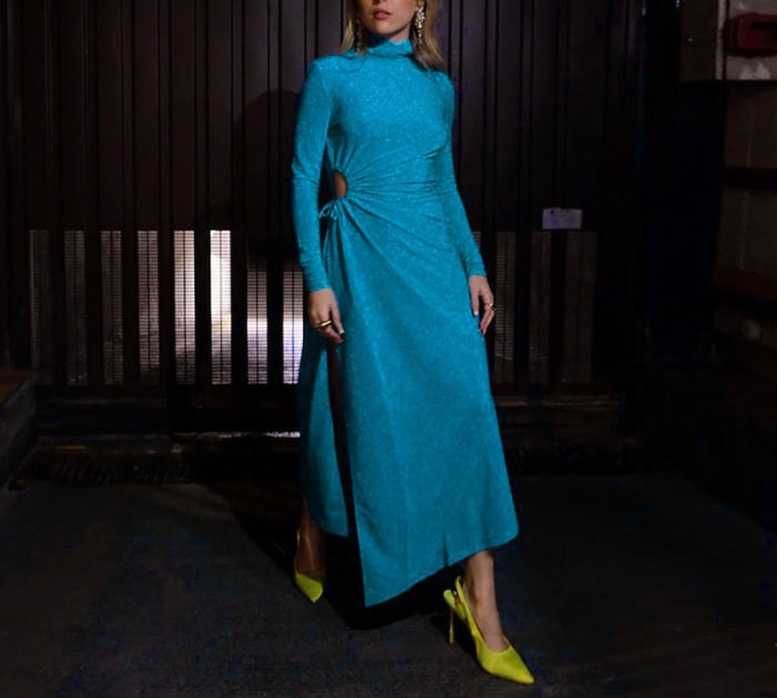 (Real Image)2022 Styles Women Fashion Summer TikTok&Instagram Styles Long Sleeve High Split Maxi DressSKU: #XF92669-1