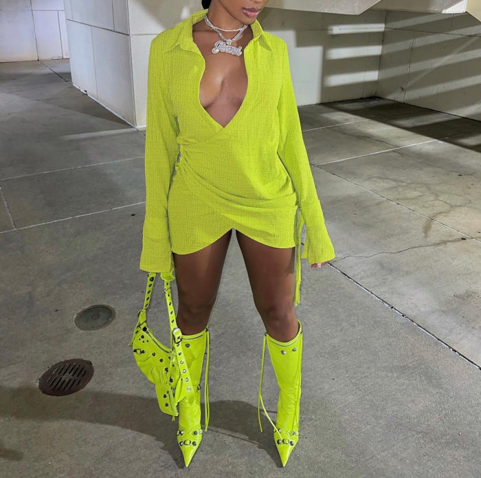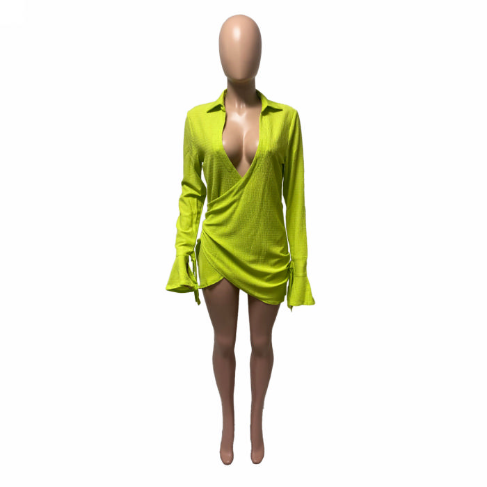 (Real Image)2022 Styles Women Fashion Summer TikTok&Instagram Styles Long Sleeve Irregular Mini DressSKU: #OEM5761-1