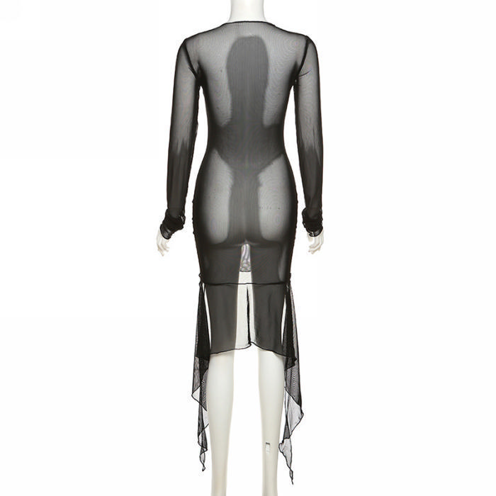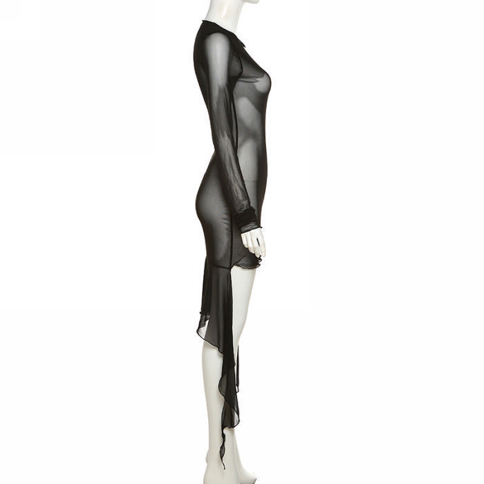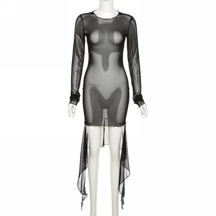 (Real Image)2022 Styles Women Fashion Summer TikTok&Instagram Styles Long Sleeve Mesh Mini DressSKU: #CF48854-1