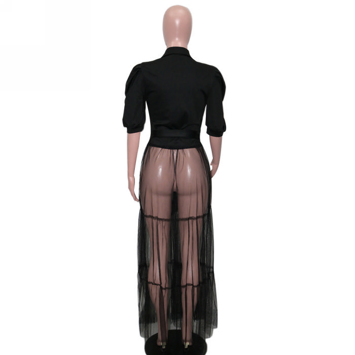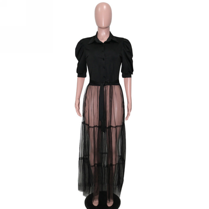 (Real Image)2022 Styles Women Fashion Summer TikTok&Instagram Styles Mesh Hem Shirts Maxi DressSKU: #XF14901-1