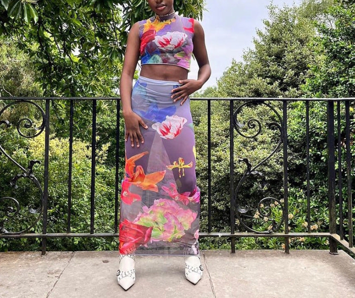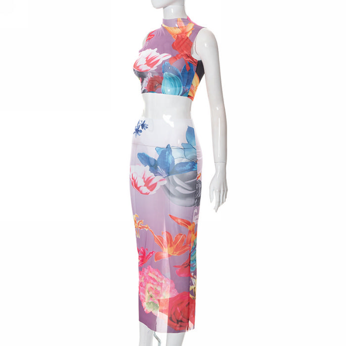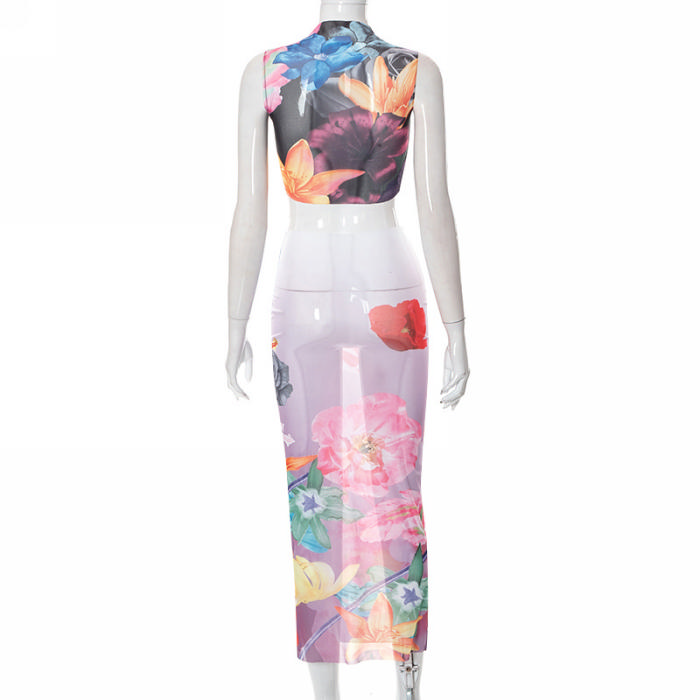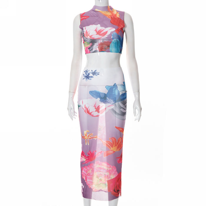 (Real Image)2022 Styles Women Fashion Summer TikTok&Instagram Styles Mesh Purple Floral Maxi DressSKU: #CF76055-1