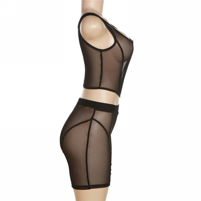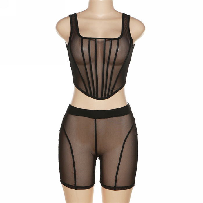 (Real Image)2022 Styles Women Fashion Summer TikTok&Instagram Styles Mesh Short Two Piece SuitSKU: #CF77029-1