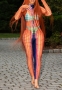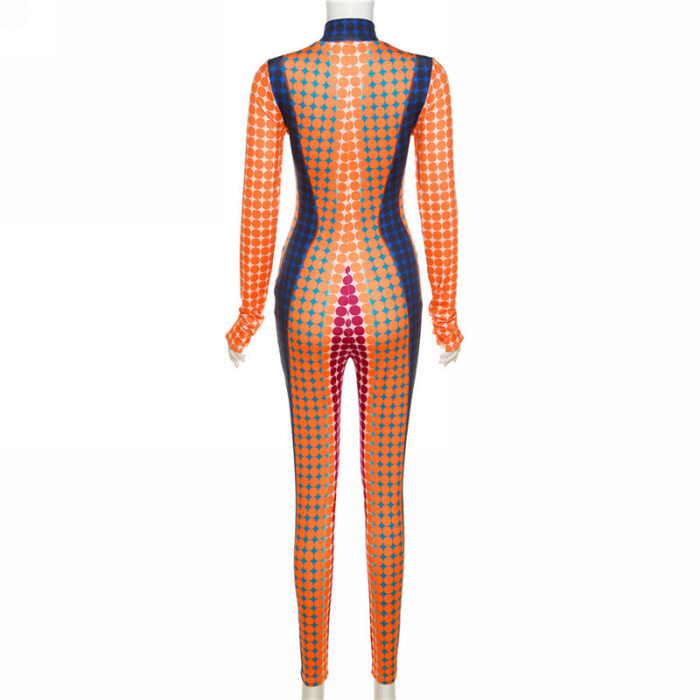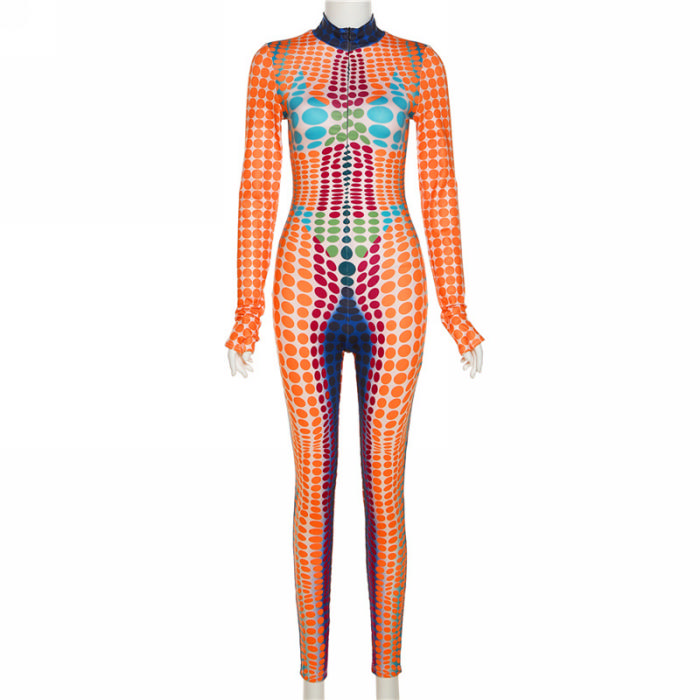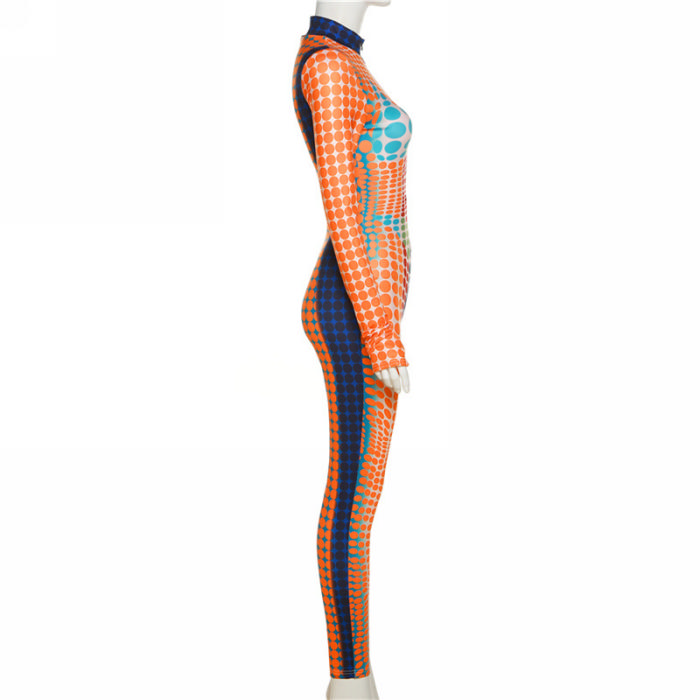 (Real Image)2022 Styles Women Fashion Summer TikTok&Instagram Styles Orange Long Sleeve Print JumpsuitSKU: #CF49874-1