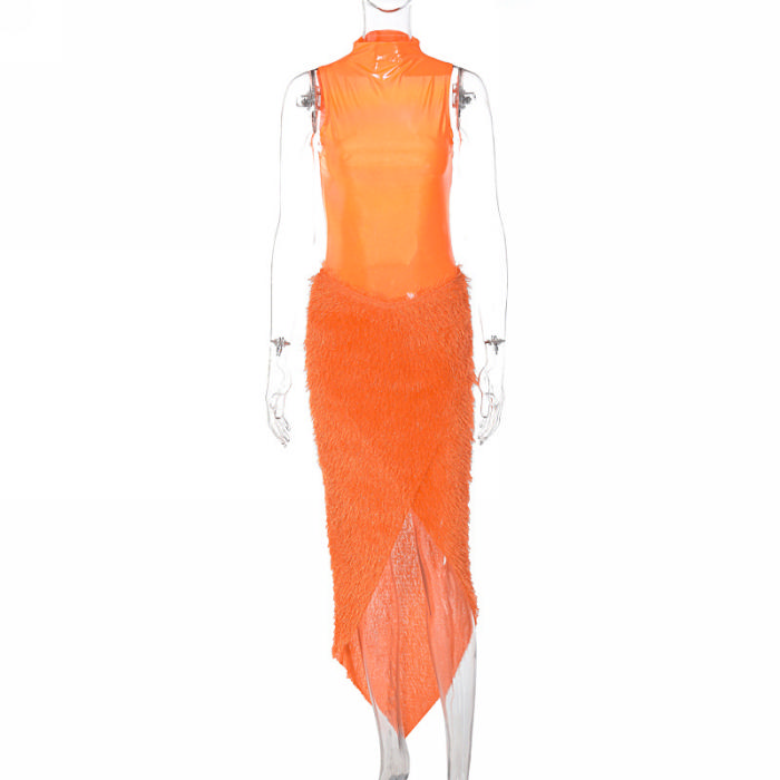 (Real Image)2022 Styles Women Fashion Summer TikTok&Instagram Styles Orange Maxi DressSKU: #CF22804-1