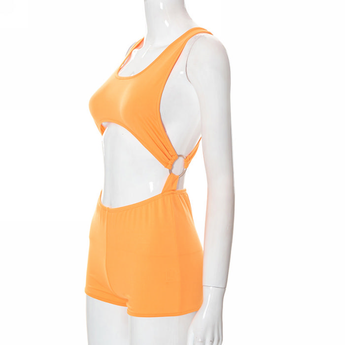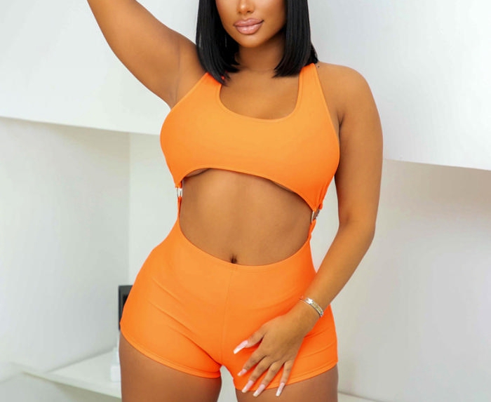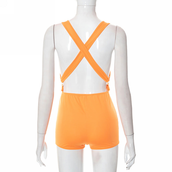 (Real Image)2022 Styles Women Fashion Summer TikTok&Instagram Styles Orange Sexy RomperSKU: #CF47131-1