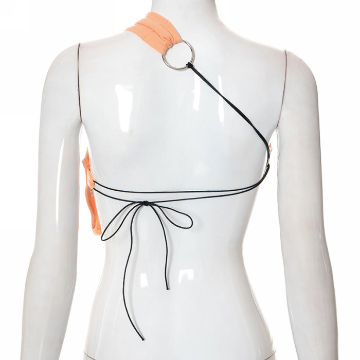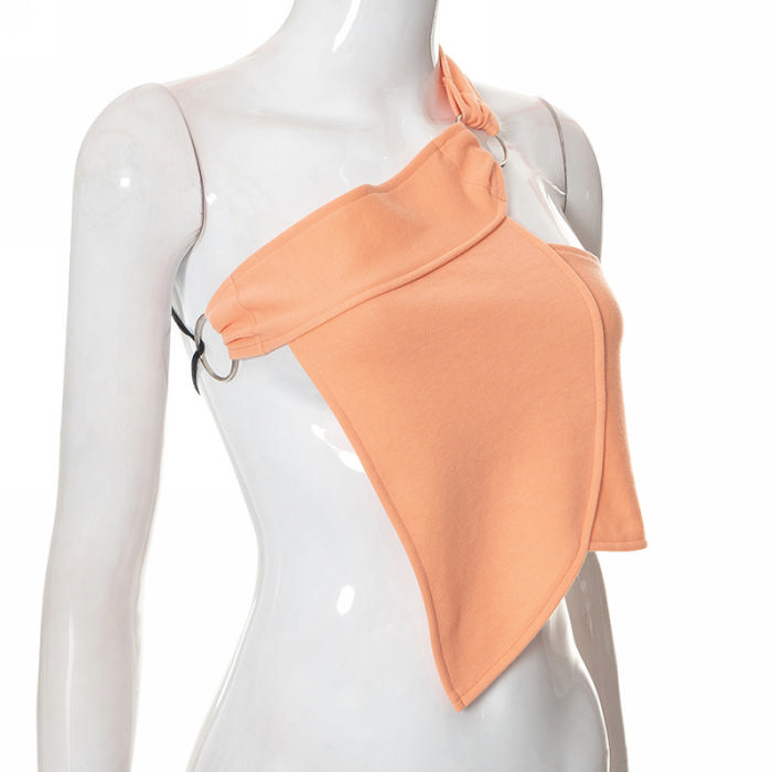 (Real Image)2022 Styles Women Fashion Summer TikTok&Instagram Styles Orange Single Shoulder Tank TopsSKU: #CF76022-1