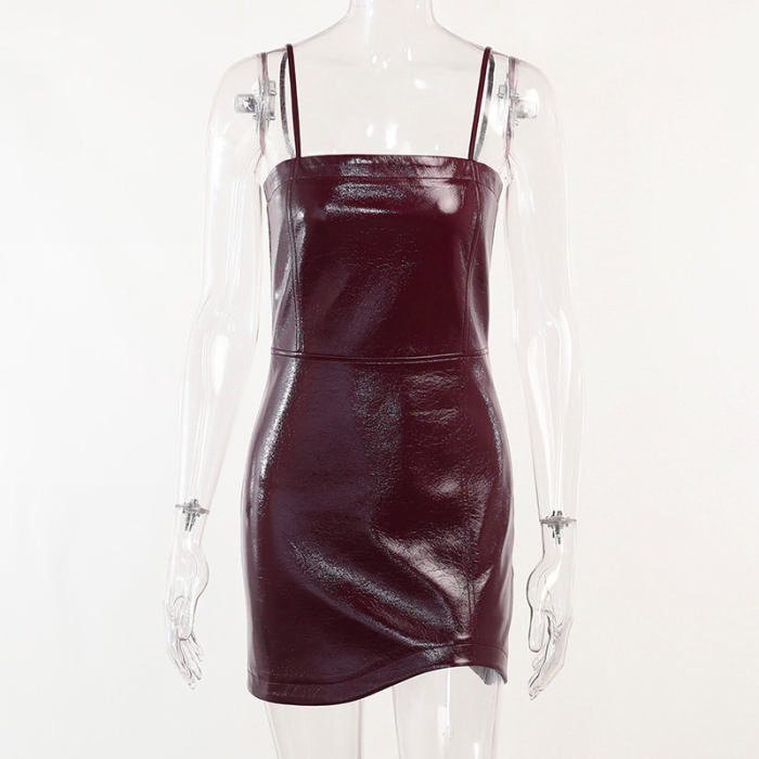 (Real Image)2022 Styles Women Fashion Summer TikTok&Instagram Styles PU Strap Mini DressSKU: #XF92578-1