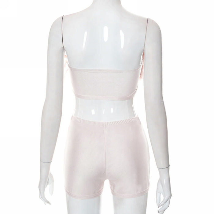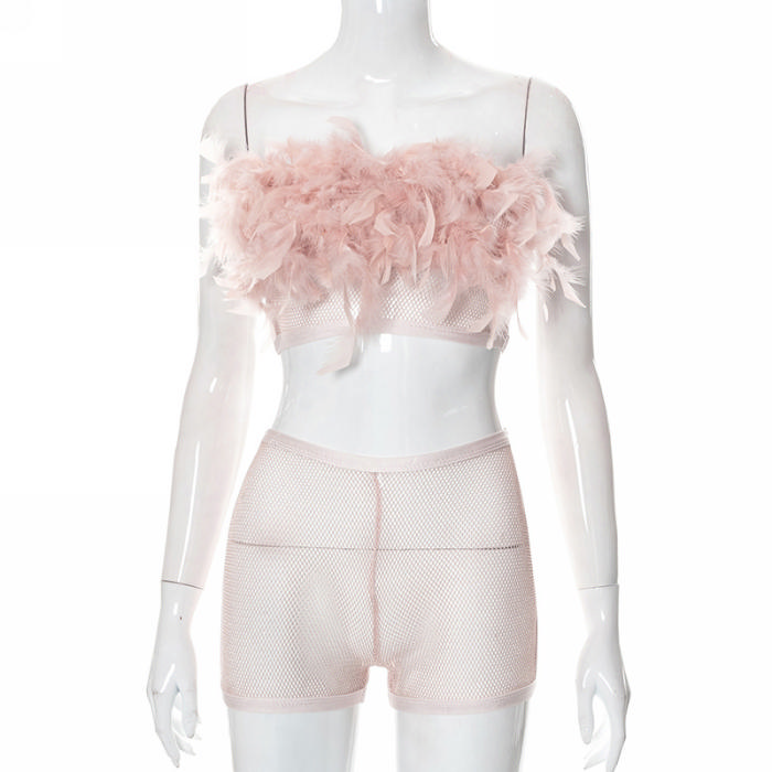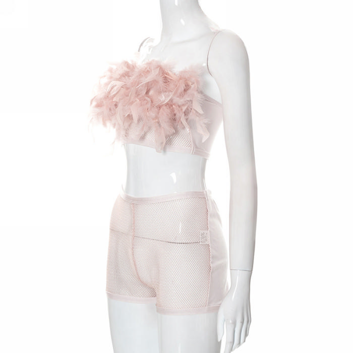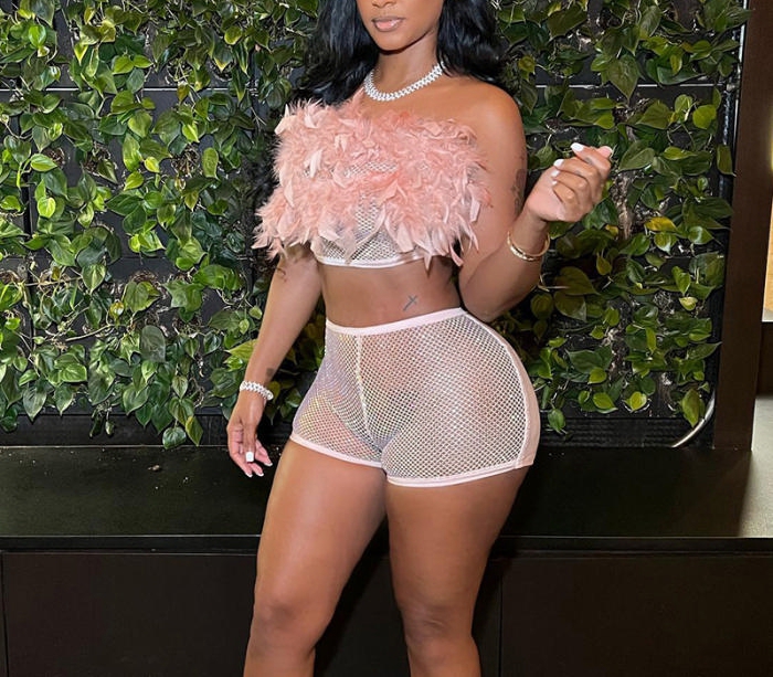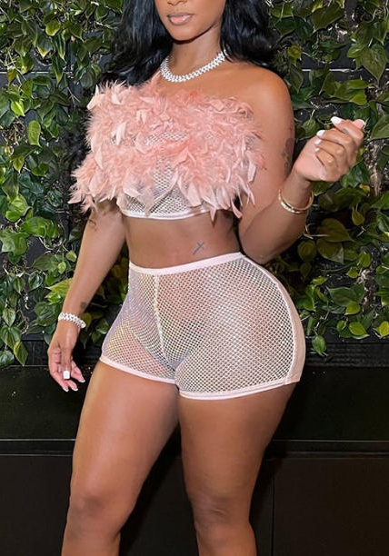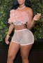 (Real Image)2022 Styles Women Fashion Summer TikTok&Instagram Styles Pink Net Short Two Piece SuitSKU: #CF47141-1