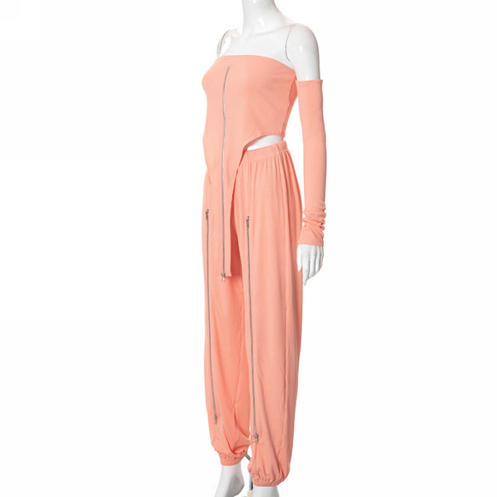 (Real Image)2022 Styles Women Fashion Summer TikTok&Instagram Styles Pink Two Piece SuitSKU: #CF47263-1
