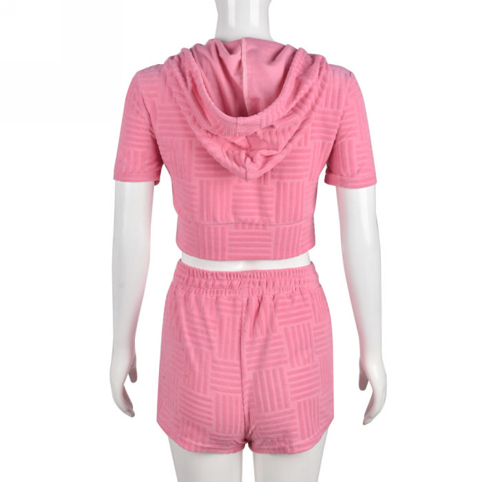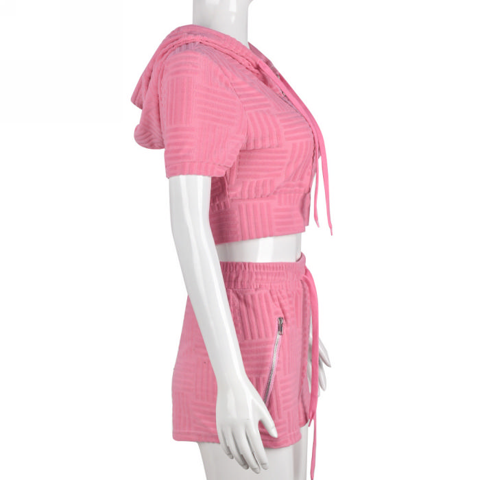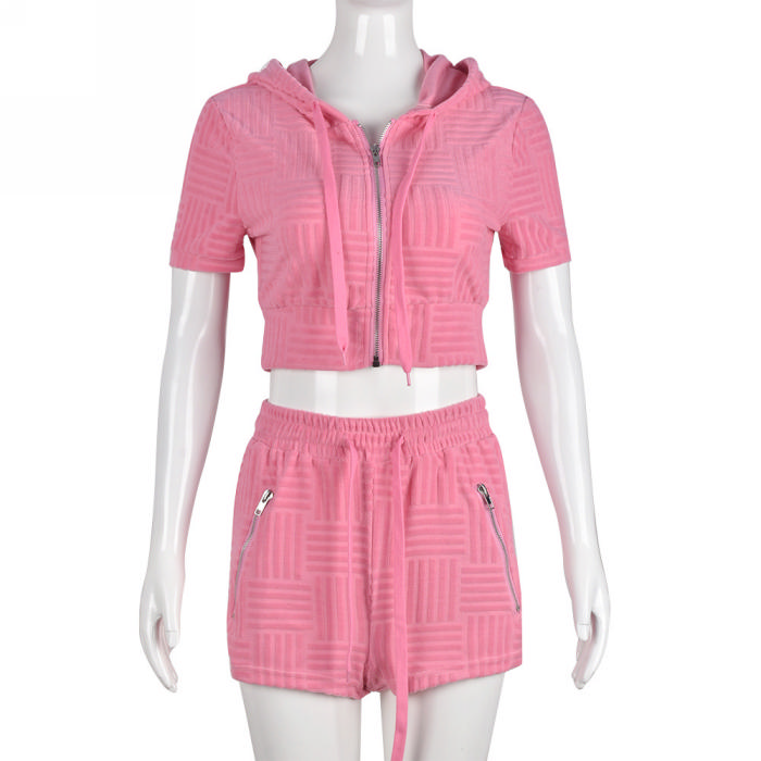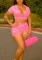 (Real Image)2022 Styles Women Fashion Summer TikTok&Instagram Styles Pink Velvet Short Two Piece SuitSKU: #CF59272-1