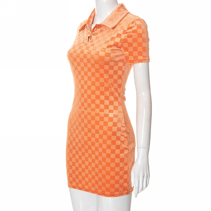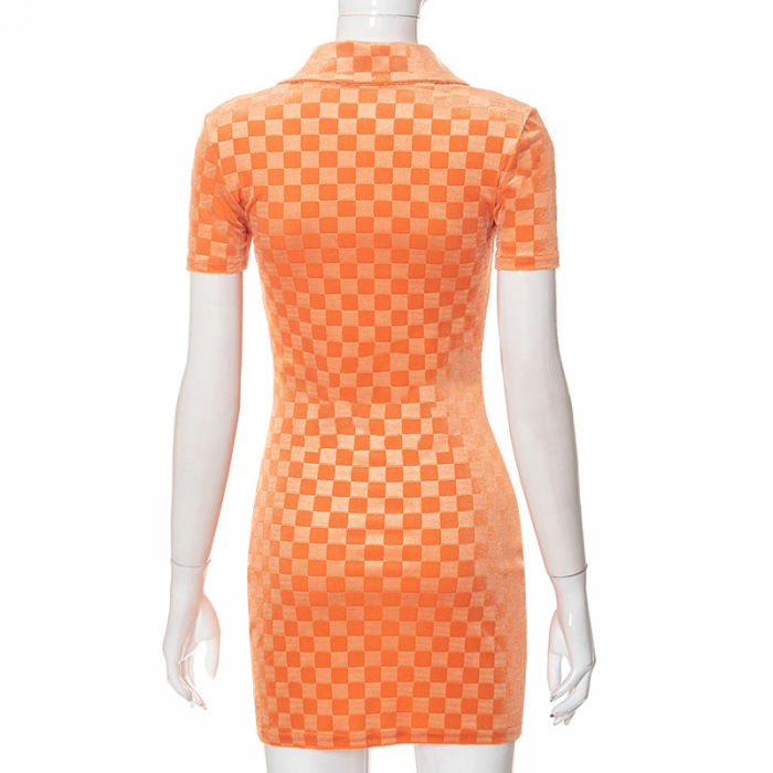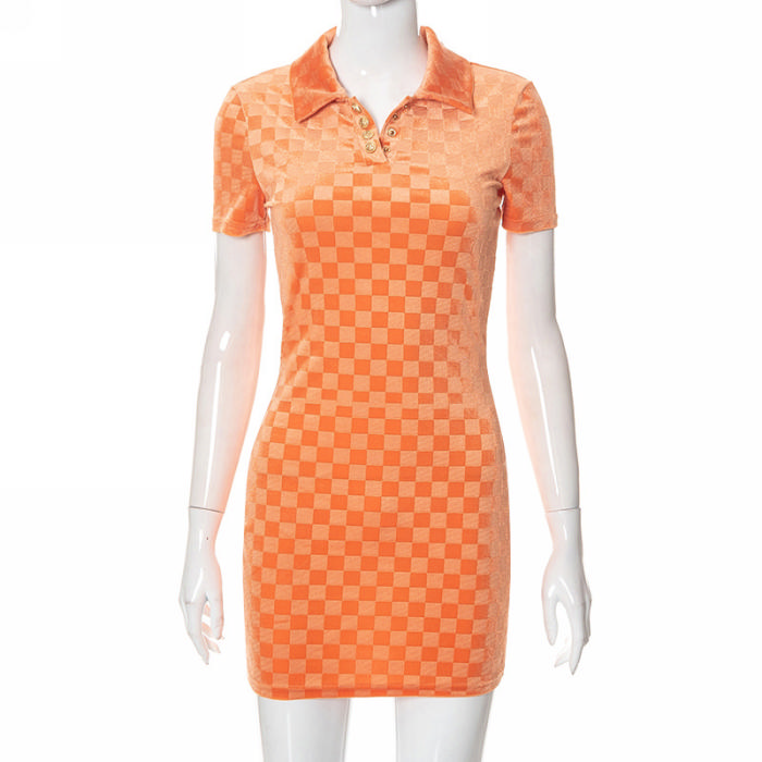 (Real Image)2022 Styles Women Fashion Summer TikTok&Instagram Styles Plaid Short Sleeve Mini DressSKU: #CF47164-1