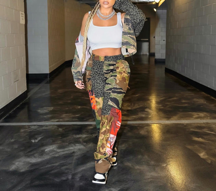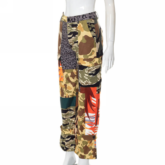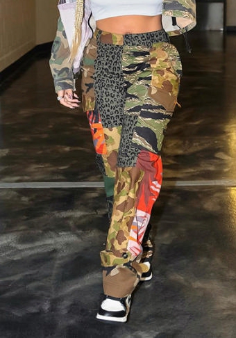 (Real Image)2022 Styles Women Fashion Summer TikTok&Instagram Styles Print Camouflage Long PantsSKU: #CF47139-1