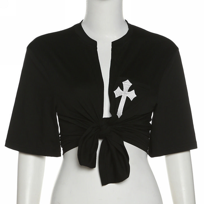 (Real Image)2022 Styles Women Fashion Summer TikTok&Instagram Styles Print Cross TeeSKU: #CF49890-1