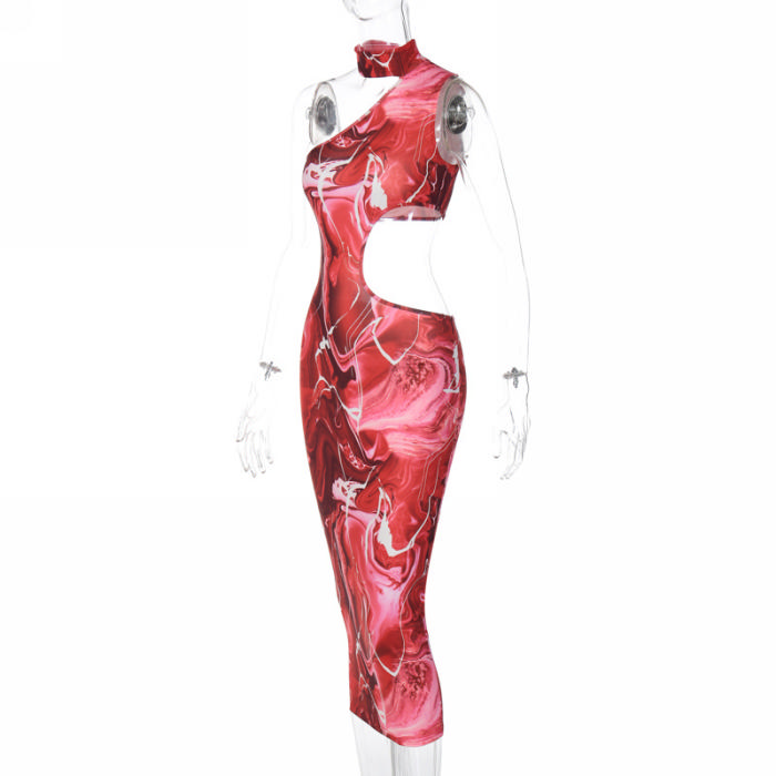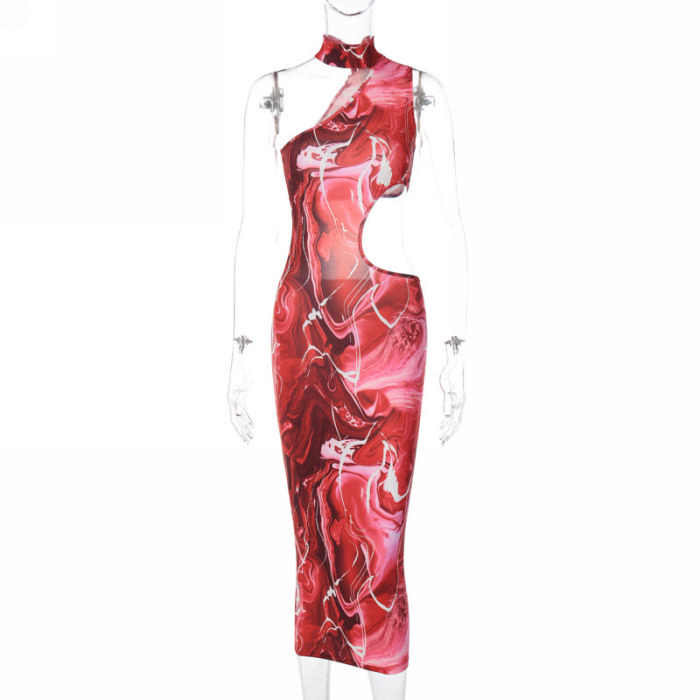 (Real Image)2022 Styles Women Fashion Summer TikTok&Instagram Styles Print Cut Out Maxi DressSKU: #CF22824-1