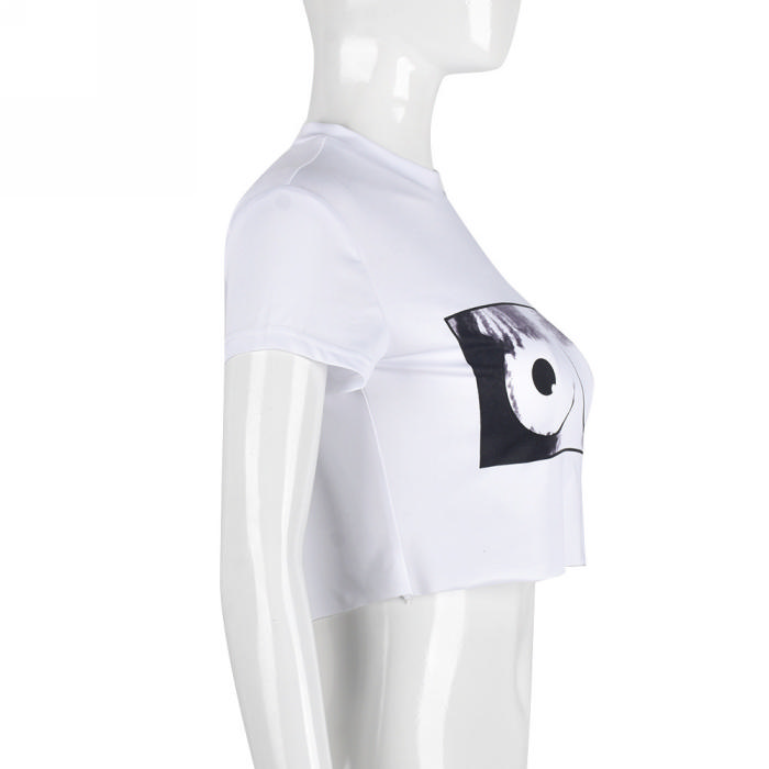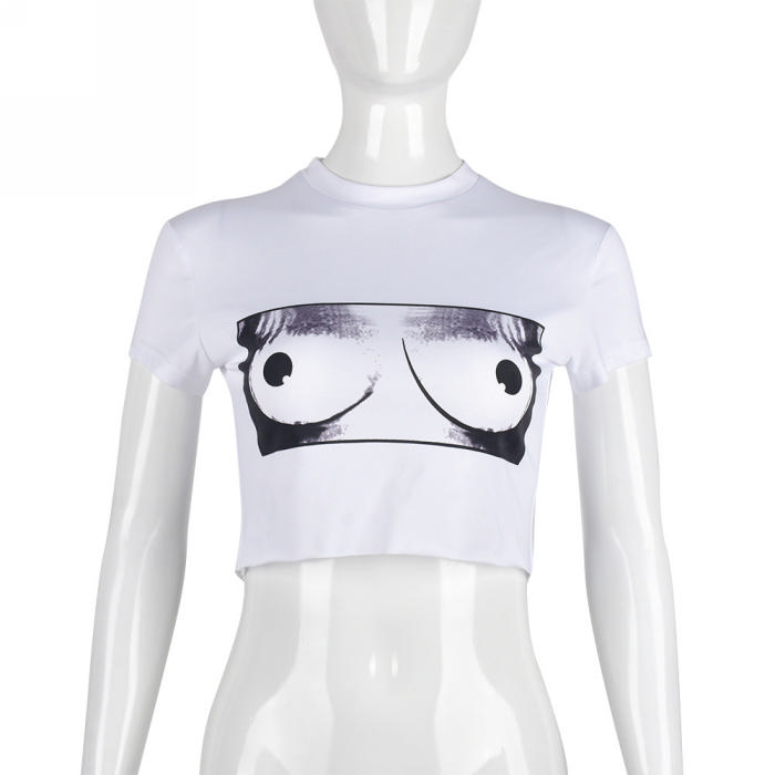 (Real Image)2022 Styles Women Fashion Summer TikTok&Instagram Styles Print Eye Short Sleeve TopsSKU: #CF59322-1