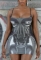 (Real Image)2022 Styles Women Fashion Summer TikTok&Instagram Styles Print Gray Strap Mini DressSKU: #CF22769-1