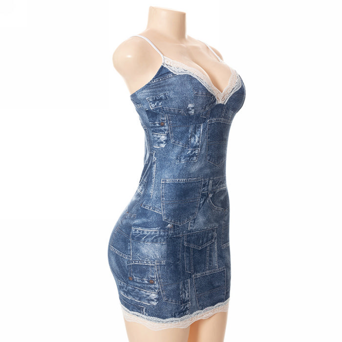 (Real Image)2022 Styles Women Fashion Summer TikTok&Instagram Styles Print Jeans Club DressSKU: #CF76004-1