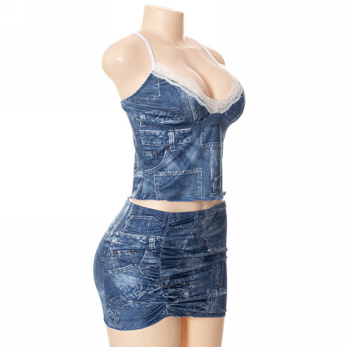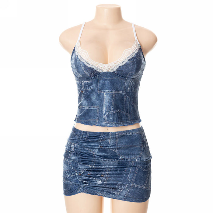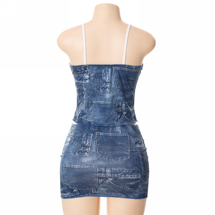 (Real Image)2022 Styles Women Fashion Summer TikTok&Instagram Styles Print Jeans Mini DressSKU: #CF76003-1