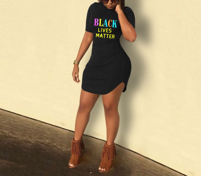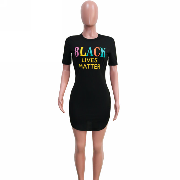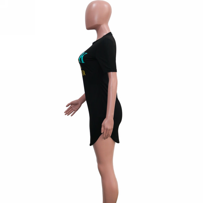 (Real Image)2022 Styles Women Fashion Summer TikTok&Instagram Styles Print Letter Short Sleeve Mini DressSKU: #XF14891-1