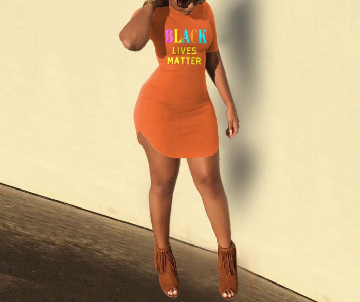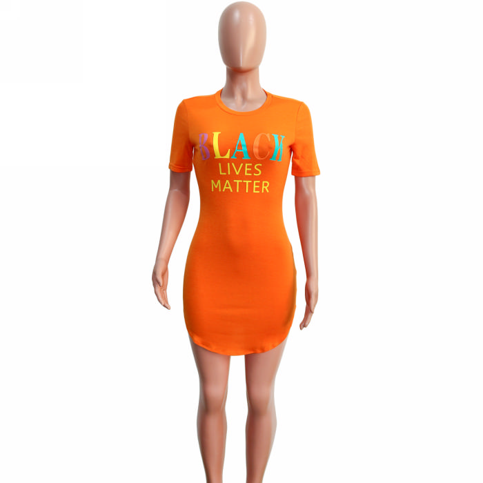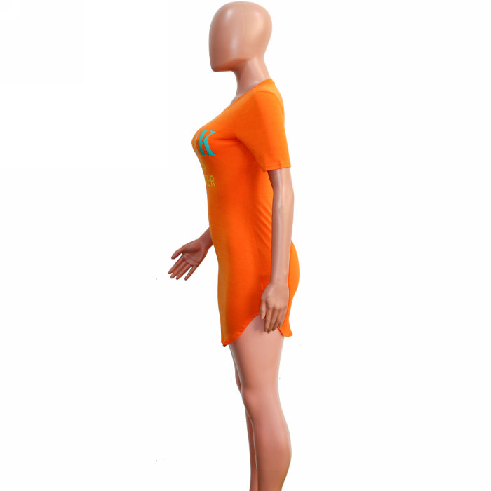 (Real Image)2022 Styles Women Fashion Summer TikTok&Instagram Styles Print Letter Short Sleeve Mini DressSKU: #XF14891-2