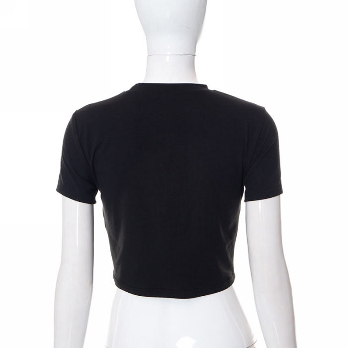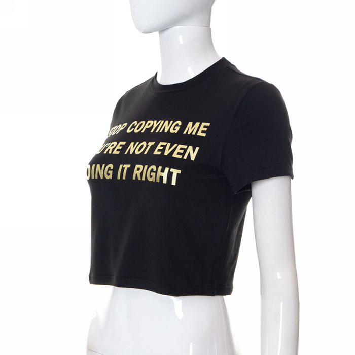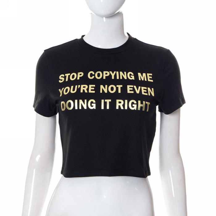 (Real Image)2022 Styles Women Fashion Summer TikTok&Instagram Styles Print Letter Short Sleeve TeeSKU: #CF76017-1