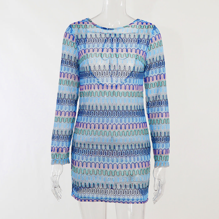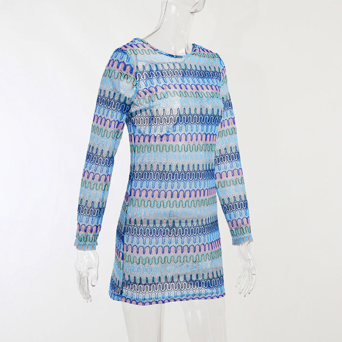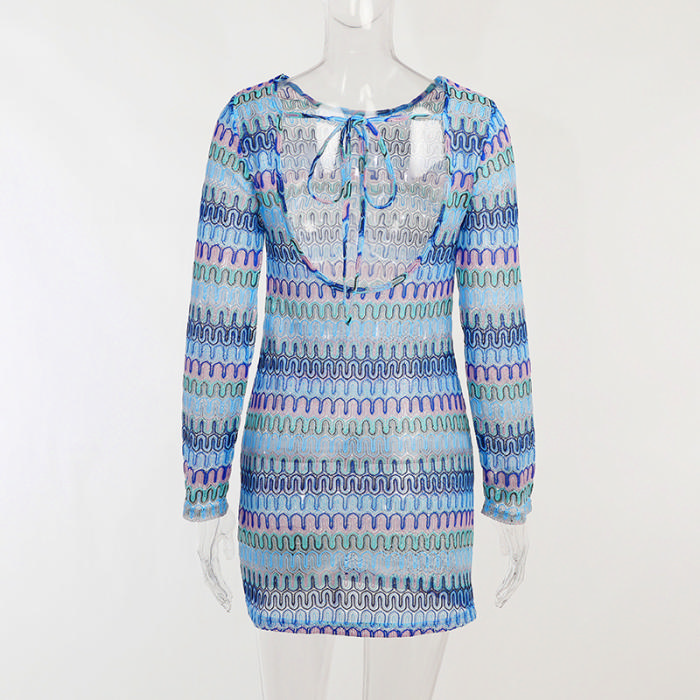 (Real Image)2022 Styles Women Fashion Summer TikTok&Instagram Styles Print Long Sleeve Backless Mini DressSKU: #XF92674-1