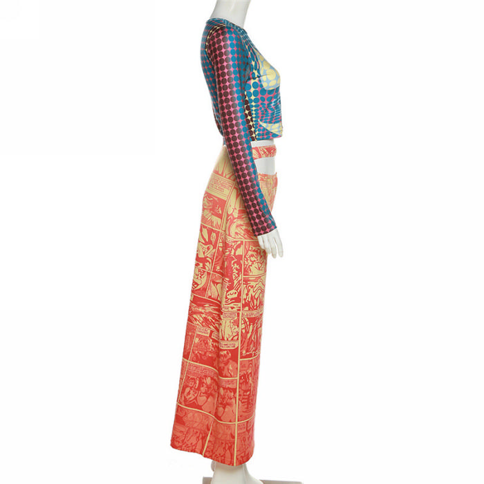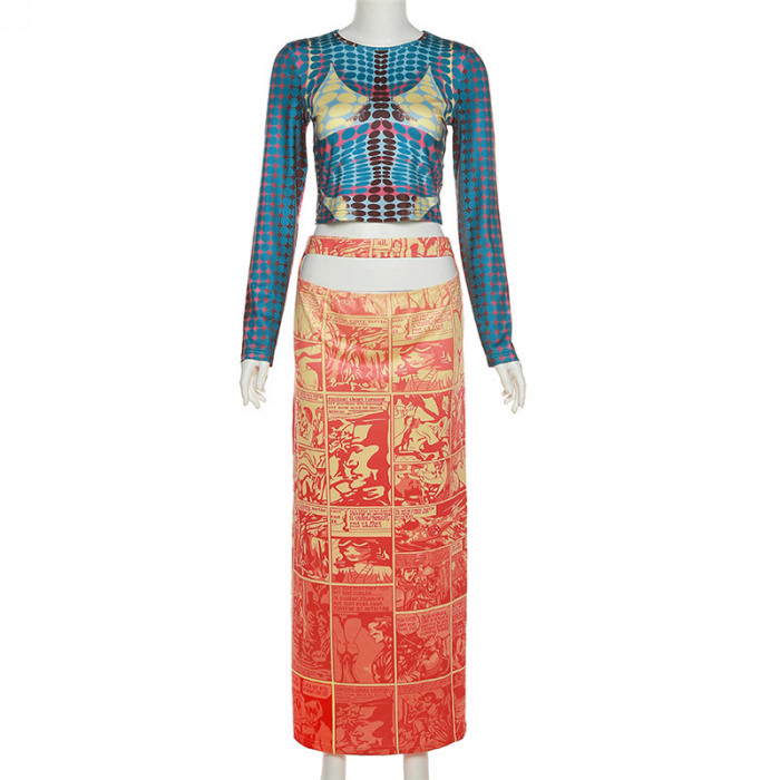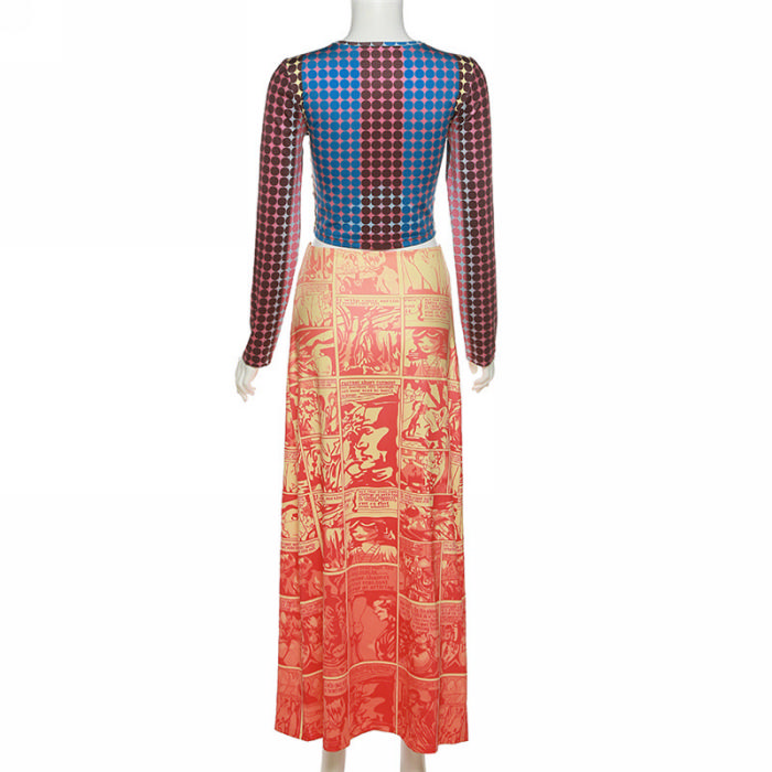 (Real Image)2022 Styles Women Fashion Summer TikTok&Instagram Styles Print Long Sleeve Maxi DressSKU: #CF48811-1