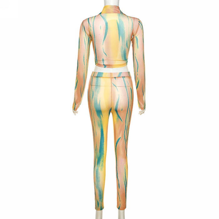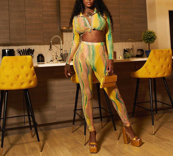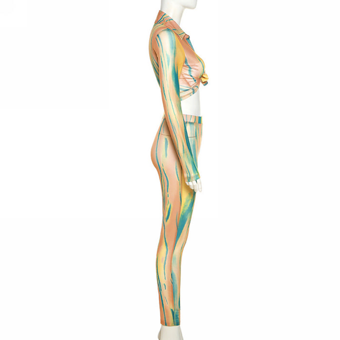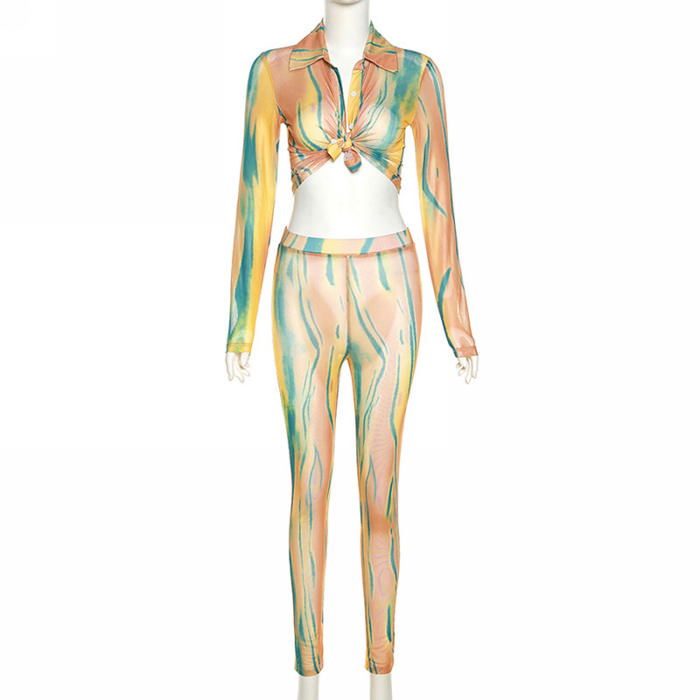 (Real Image)2022 Styles Women Fashion Summer TikTok&Instagram Styles Print Long Sleeve Two Piece SuitSKU: #CF77004-1