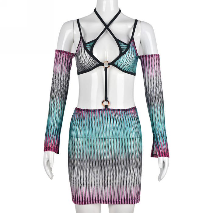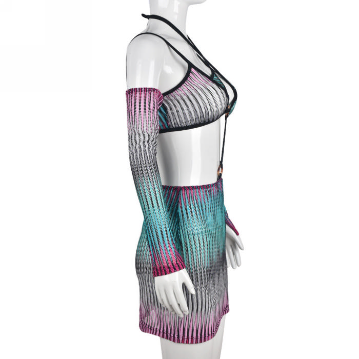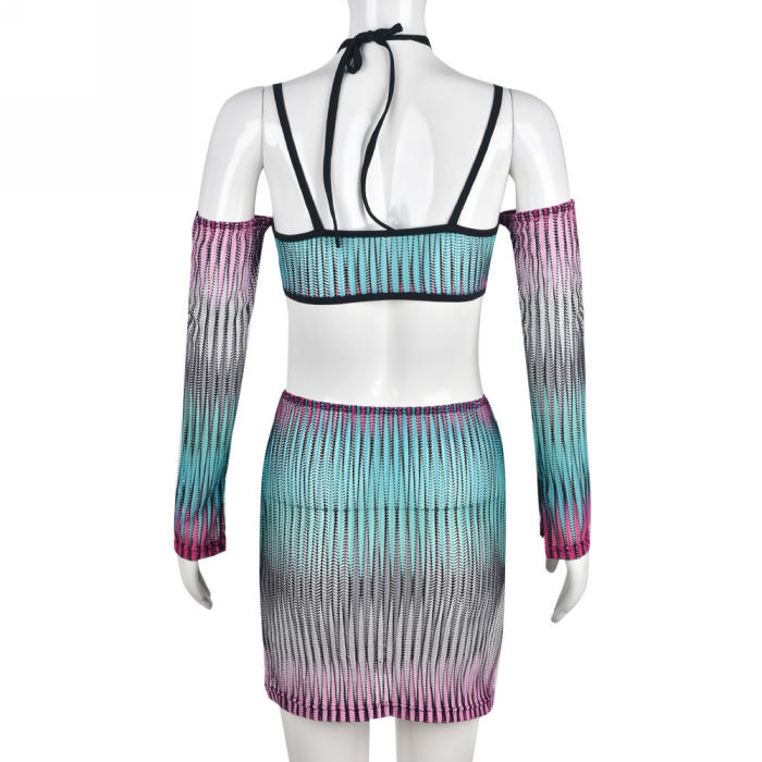 (Real Image)2022 Styles Women Fashion Summer TikTok&Instagram Styles Print MultiColor Cut Out Long Sleeve Club DressSKU: #CF59245-1