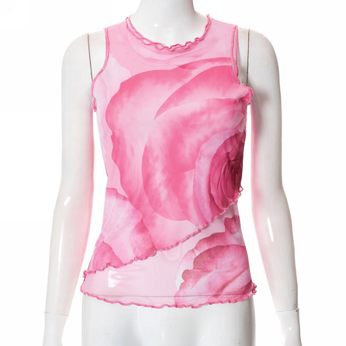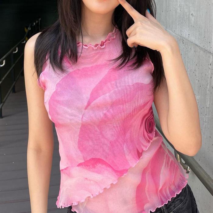 (Real Image)2022 Styles Women Fashion Summer TikTok&Instagram Styles Print Pink TopsSKU: #CF76002-1