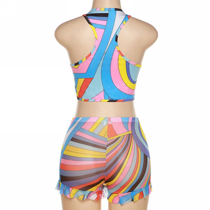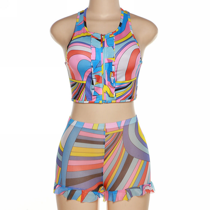 (Real Image)2022 Styles Women Fashion Summer TikTok&Instagram Styles Print Short Two Piece SuitSKU: #CF77036-1