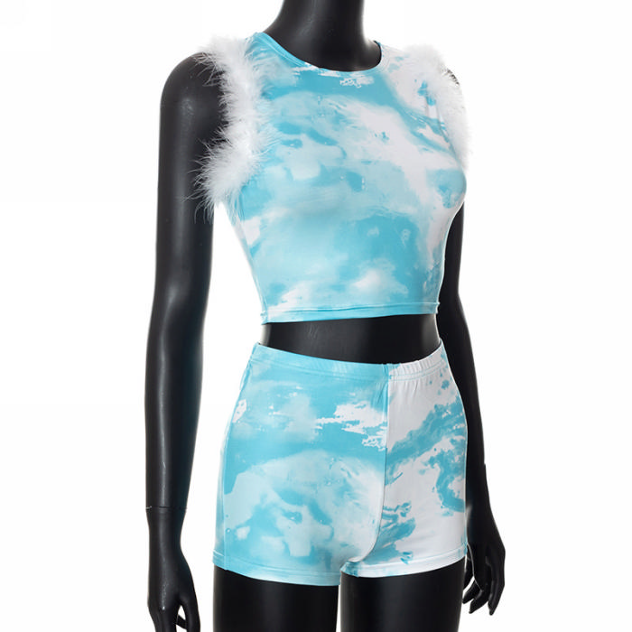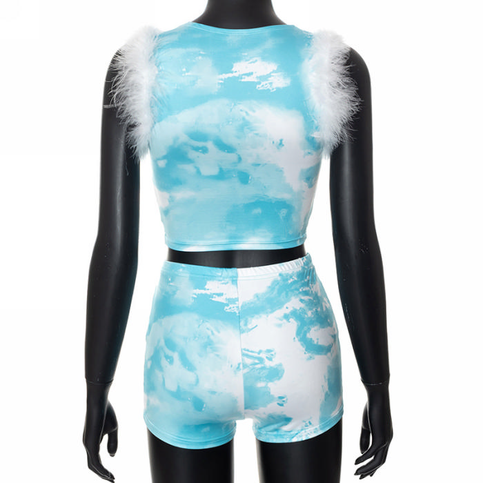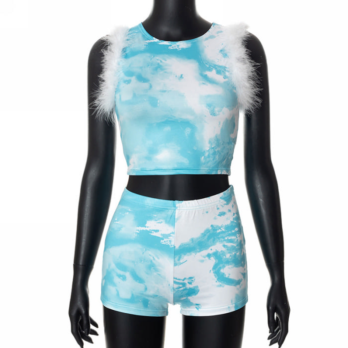 (Real Image)2022 Styles Women Fashion Summer TikTok&Instagram Styles Print Short Two Piece SuitSKU: #CF47258-1
