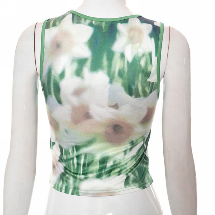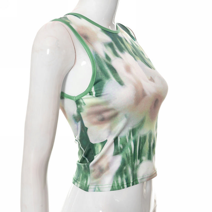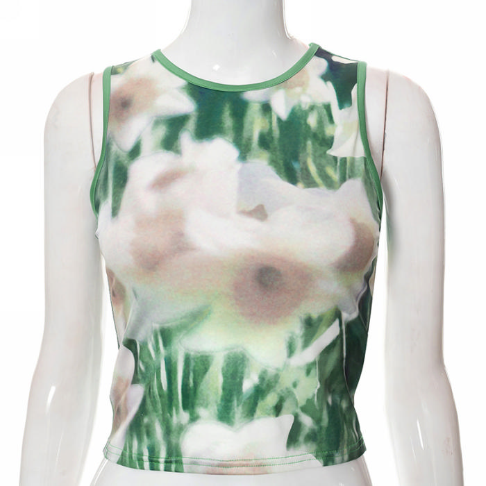 (Real Image)2022 Styles Women Fashion Summer TikTok&Instagram Styles Print Sleeveless TeeSKU: #CF76006-1