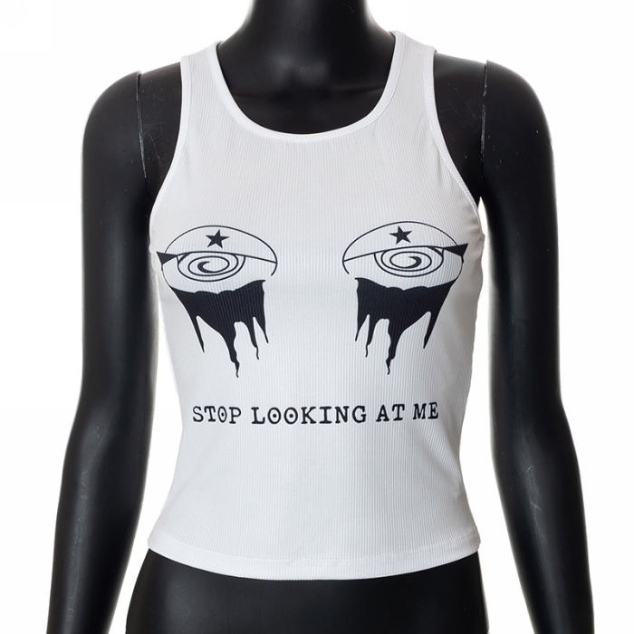 (Real Image)2022 Styles Women Fashion Summer TikTok&Instagram Styles Print Strap TeeSKU: #CF76020-1