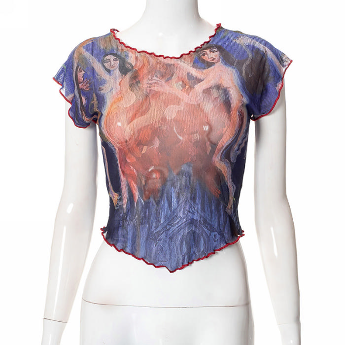 (Real Image)2022 Styles Women Fashion Summer TikTok&Instagram Styles Print TeeSKU: #CF76008-1