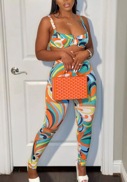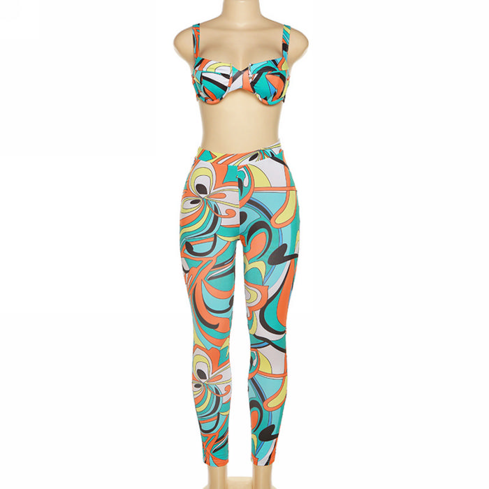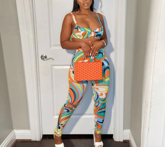 (Real Image)2022 Styles Women Fashion Summer TikTok&Instagram Styles Print Two Piece SuitSKU: #CF77035-1