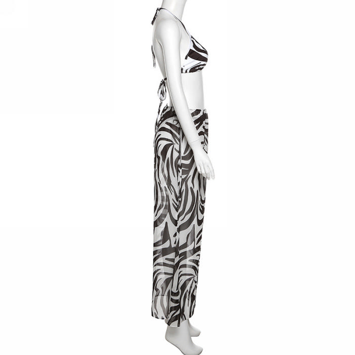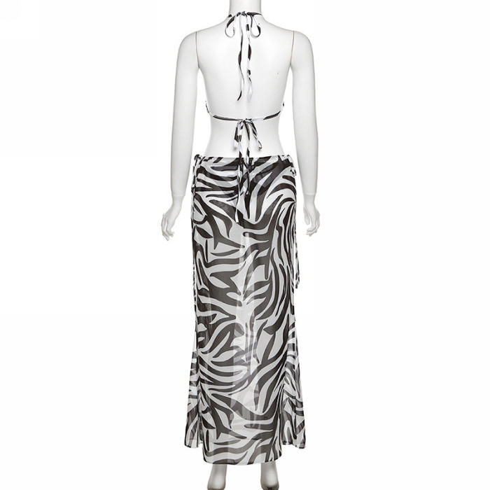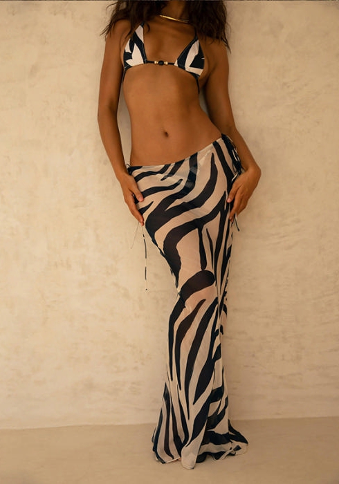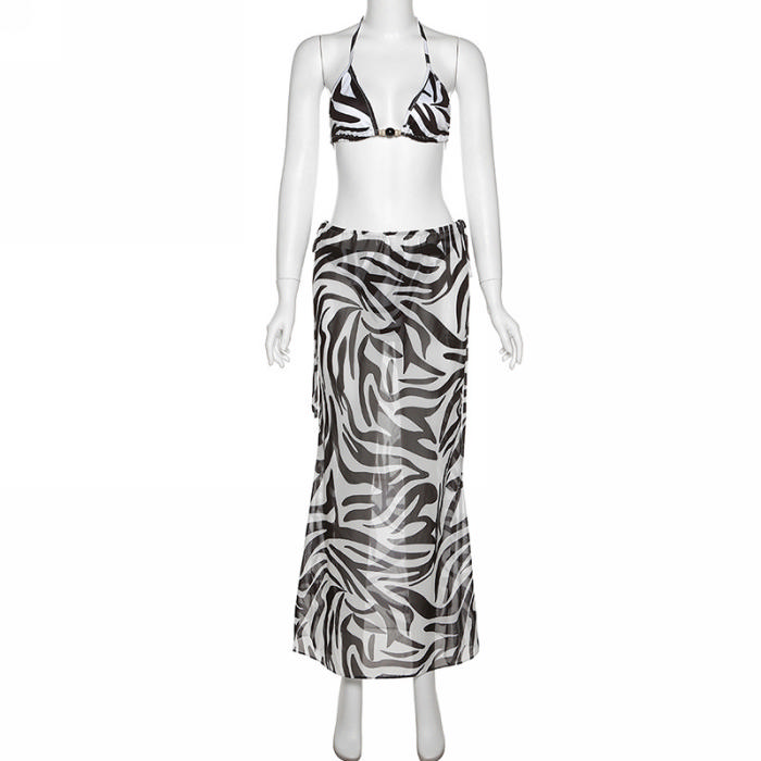 (Real Image)2022 Styles Women Fashion Summer TikTok&Instagram Styles Print Zebra Bikini Set + Maxi SkirtsSKU: #CF47195-1