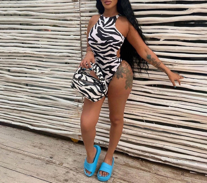 (Real Image)2022 Styles Women Fashion Summer TikTok&Instagram Styles Print Zebra BodysuitSKU: #OM0243-1