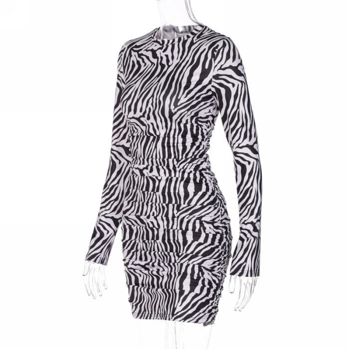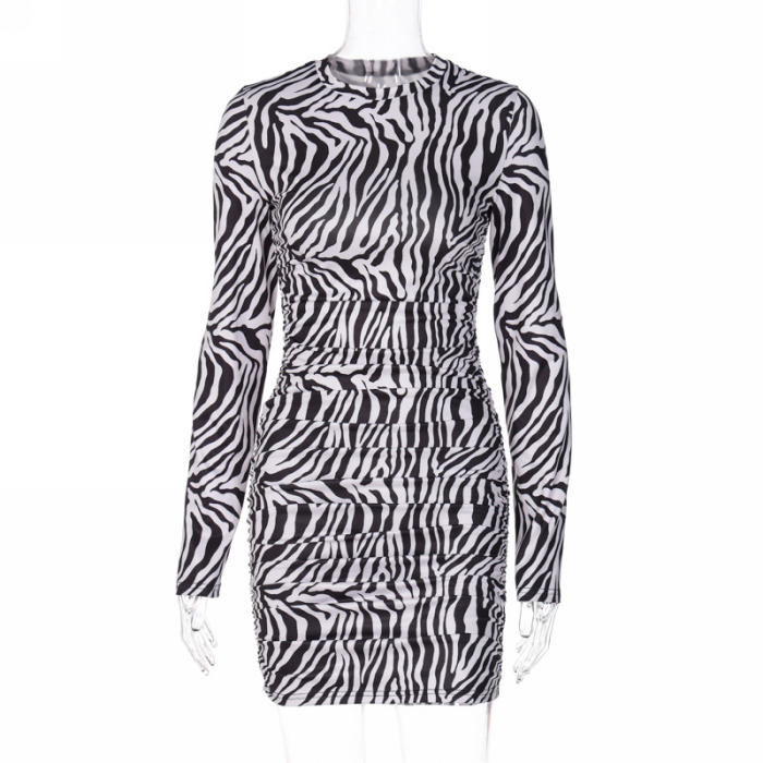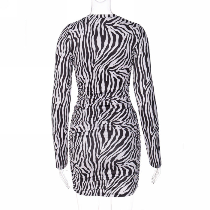 (Real Image)2022 Styles Women Fashion Summer TikTok&Instagram Styles Print Zebra Long Sleeve Mini DressSKU: #CF22755-1