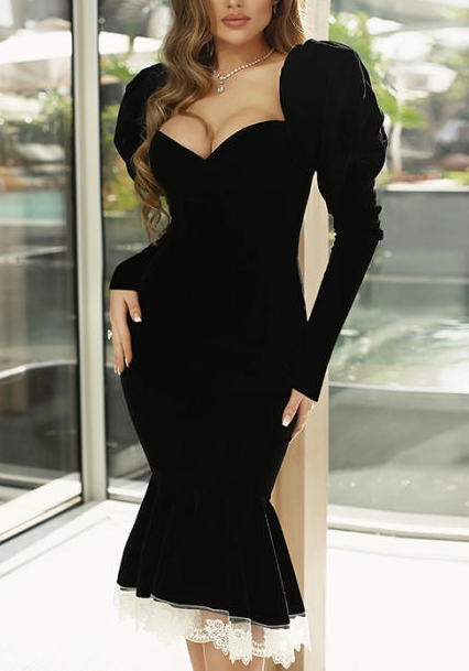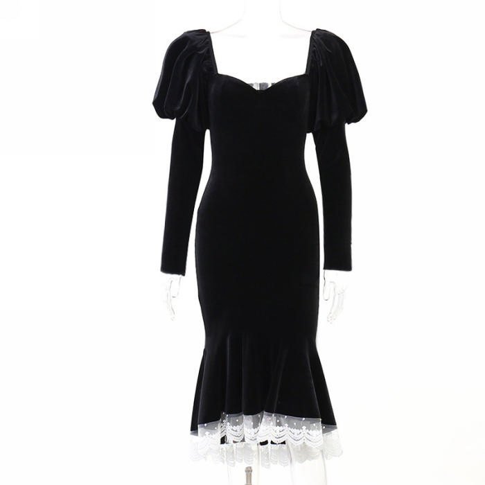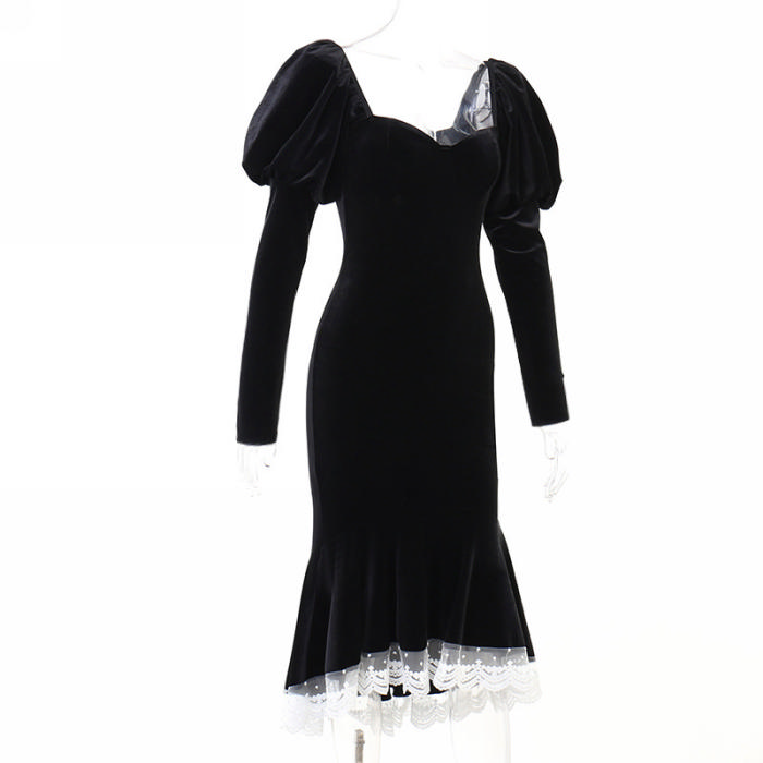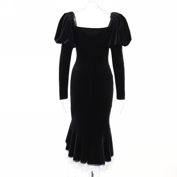 (Real Image)2022 Styles Women Fashion Summer TikTok&Instagram Styles Puff Long Sleeve Hem Midi DressSKU: #XF92596-1