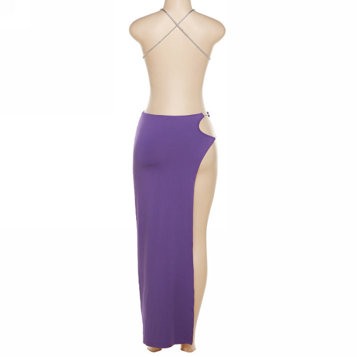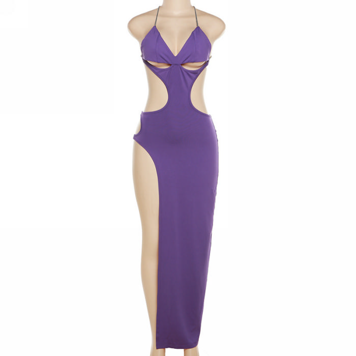 (Real Image)2022 Styles Women Fashion Summer TikTok&Instagram Styles Purple Cut Out Maxi DressSKU: #CF48802-1
