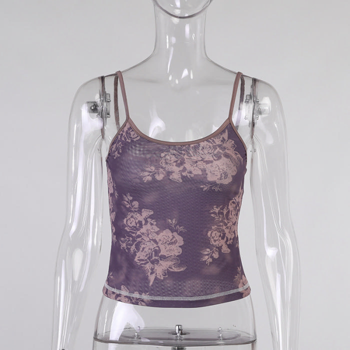 (Real Image)2022 Styles Women Fashion Summer TikTok&Instagram Styles Purple Print Tank TopsSKU: #XF92679-1