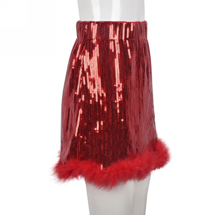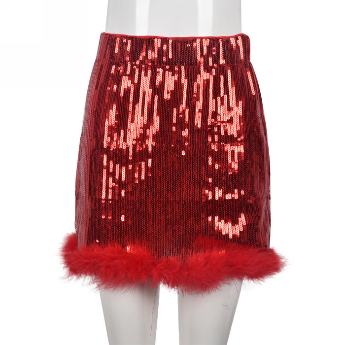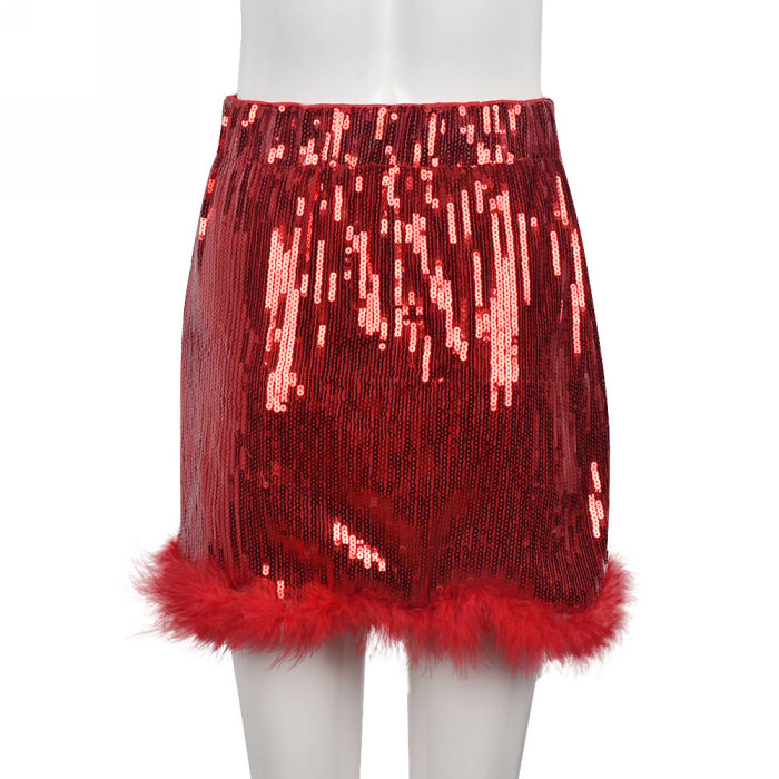 (Real Image)2022 Styles Women Fashion Summer TikTok&Instagram Styles Red Sequin SkirtsSKU: #CF59233-1